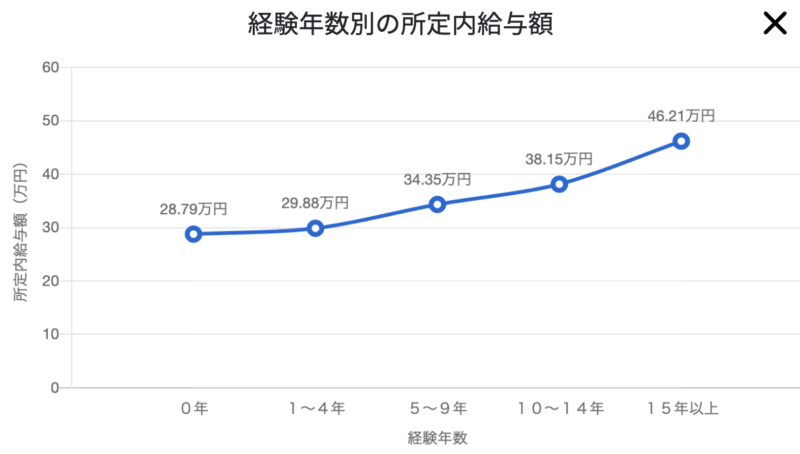 経験値がつけばその分専門性が上がるため、平均年収が上がっていることが分かるでしょう。